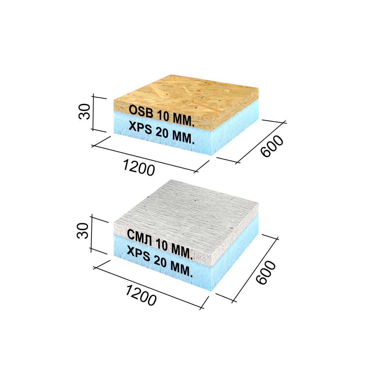 Слой XPS наделяет конструкцию сэндвича отличными регулируемыми (за счет изменения толщины) изоляционными свойствами. Слой СМЛ или ОСБ придает конструкции плоскостную жесткость и подготовку под дальнейшие отделочные работы. Температурный диапазон эксплуатации сэндвича от -50 до +75 С может применяться для внутренней, наружной и влажной зоны.
