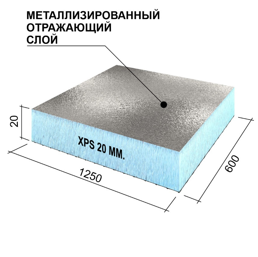 Панель теплоизоляционная Ruspanel RPG Foil 1250х600х20 мм экструдированный полистирол с нанесенным слоем полимерцемента для организации контактной поверхности и готовности под дальнейшую отделку. Благодаря высокому уровню фабричной готовности - материал оптимизирует мокрые процессы, удобен в работе, снижает трудозатраты и повышает качество. Металлизированное покрытие обеспечивает 97% отражения теплового излучения, поэтому объекты защищенные фольгированными панелями прекрасно теплоизолированы и защищены от влаги.