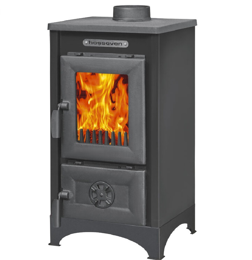 Печь отопительная дровяная Hosseven 9008 Mini Antracite которая выполнена из чугуна и стали, имеет большую топку с верхним подключением дымохода, зольный ящик с удобной дверкой, регулирующей подачу воздуха, нишу для дров снизу, оригинальный дизайн и крепкие, надежные ручки. При этом печь-камин прекрасно справляется с основной задачей - обогревом помещений, создавая эффект присутствия открытого огня, которым можно будет любоваться с любого места благодаря жаропрочному стеклу.