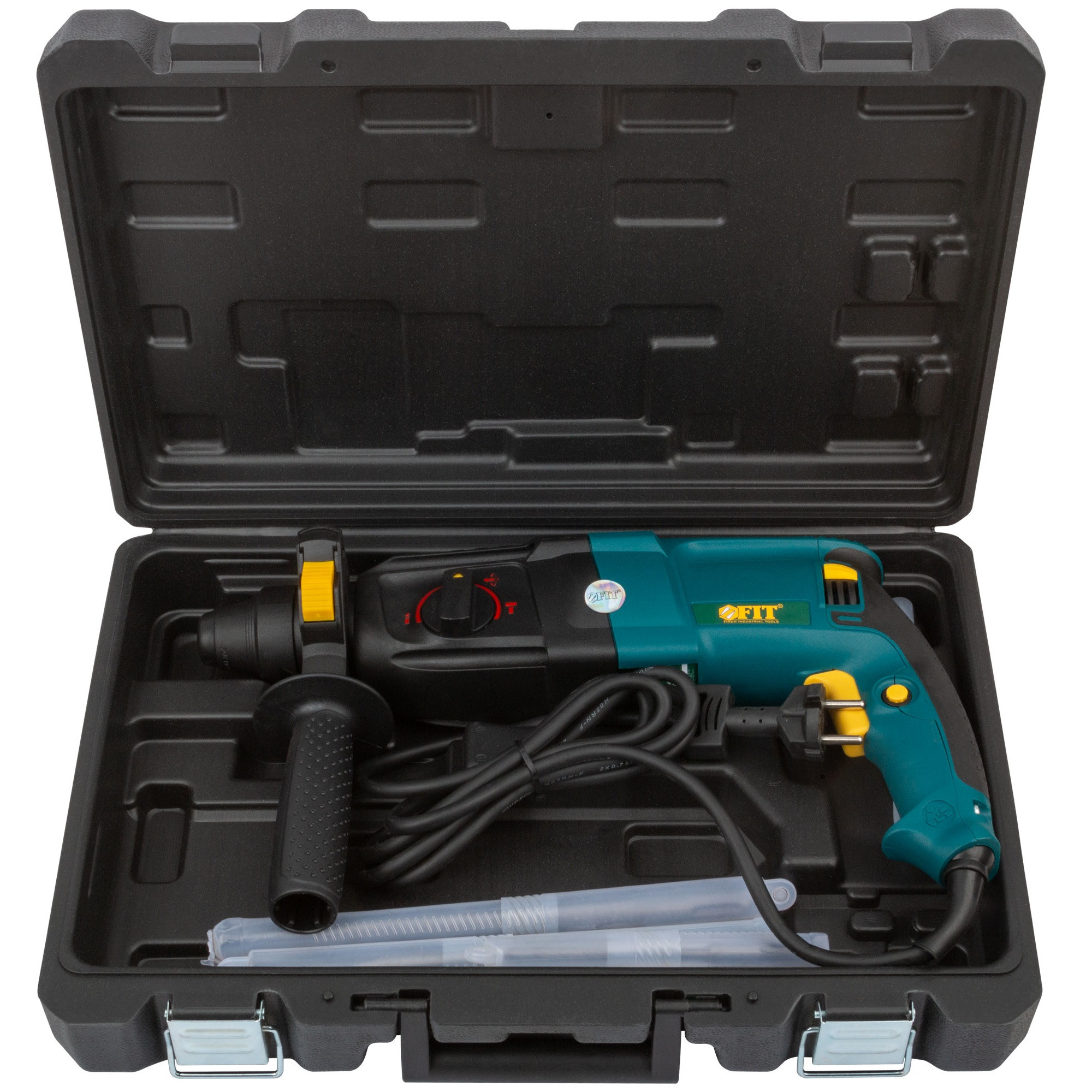 Перфоратор монтажный Fit 80106 800 Вт подходит для бытового использования. Имеет три режима работы: сверление, сверление с ударом и долбление. Реверс предусмотрен для легкого извлечения застрявшего бура. Патрон SDS-Plus помогает быстрее заменить оснастку. Предусмотрена дополнительная рукоять для удобной работы.