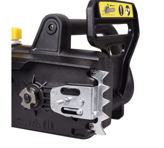 - Безопасность. Автоматический тормоз цепи в виде щитка обеспечивает безопасность работы с электропилой, в первую очередь, защиту ваших рук