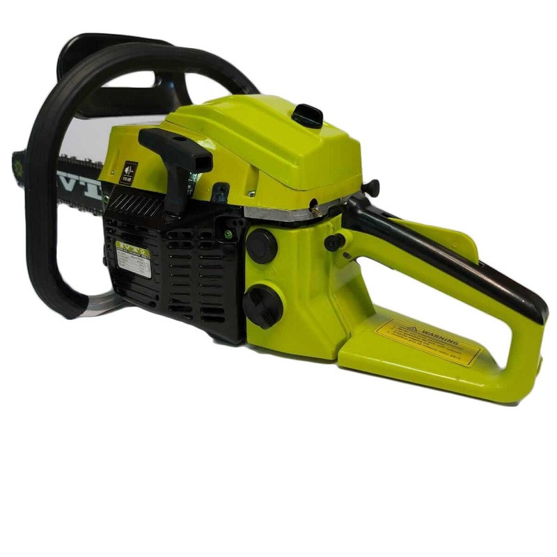 Бензиновая пила предназначена для пиления древесины и валки деревьев различных пород, используется в строительстве и для заготовки дров. Наличие антивибрационной системы делает работу с инструментом более комфортной. Блокировка от случайного запуска и экстренный тормоз повышает безопасность эксплуатации. Предусмотрен быстрый доступ к воздушному фильтру и свече зажигания. Имеет боковое натяжение цепи и кнопку подкачки топлива.