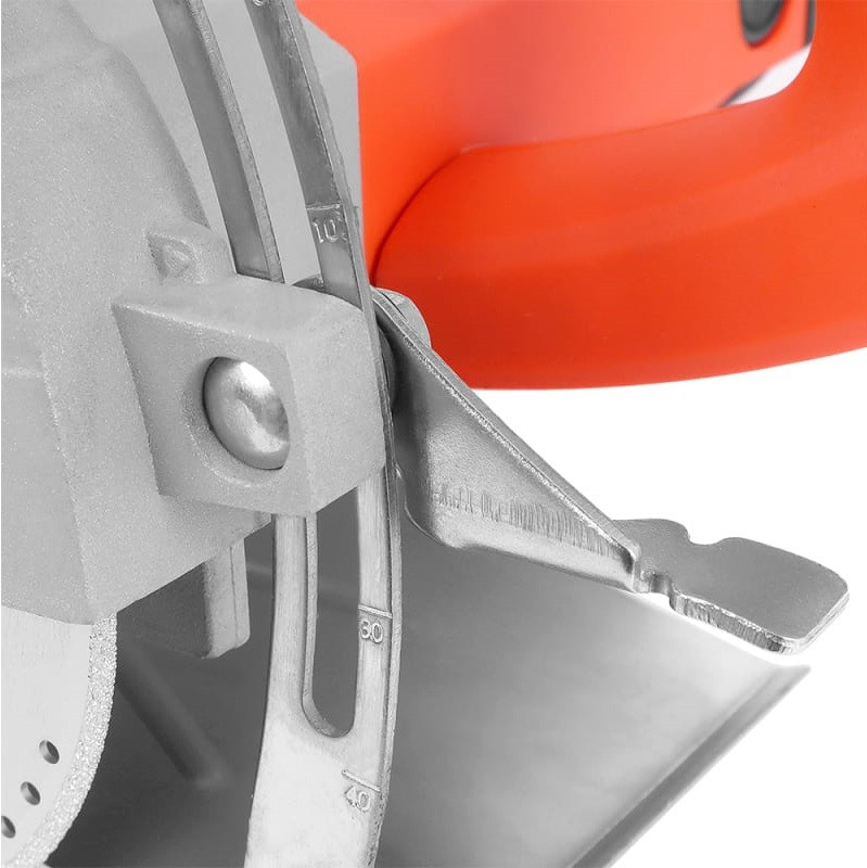 Пила используется как для сухого, так и для резки с подачей вод. Для этого в комплекте поставки предусмотрено устройство PRCD защищающее оператора от поражения электрическим током. Есть форсунка и шланг для подачи воды с краном для регулировки потока.