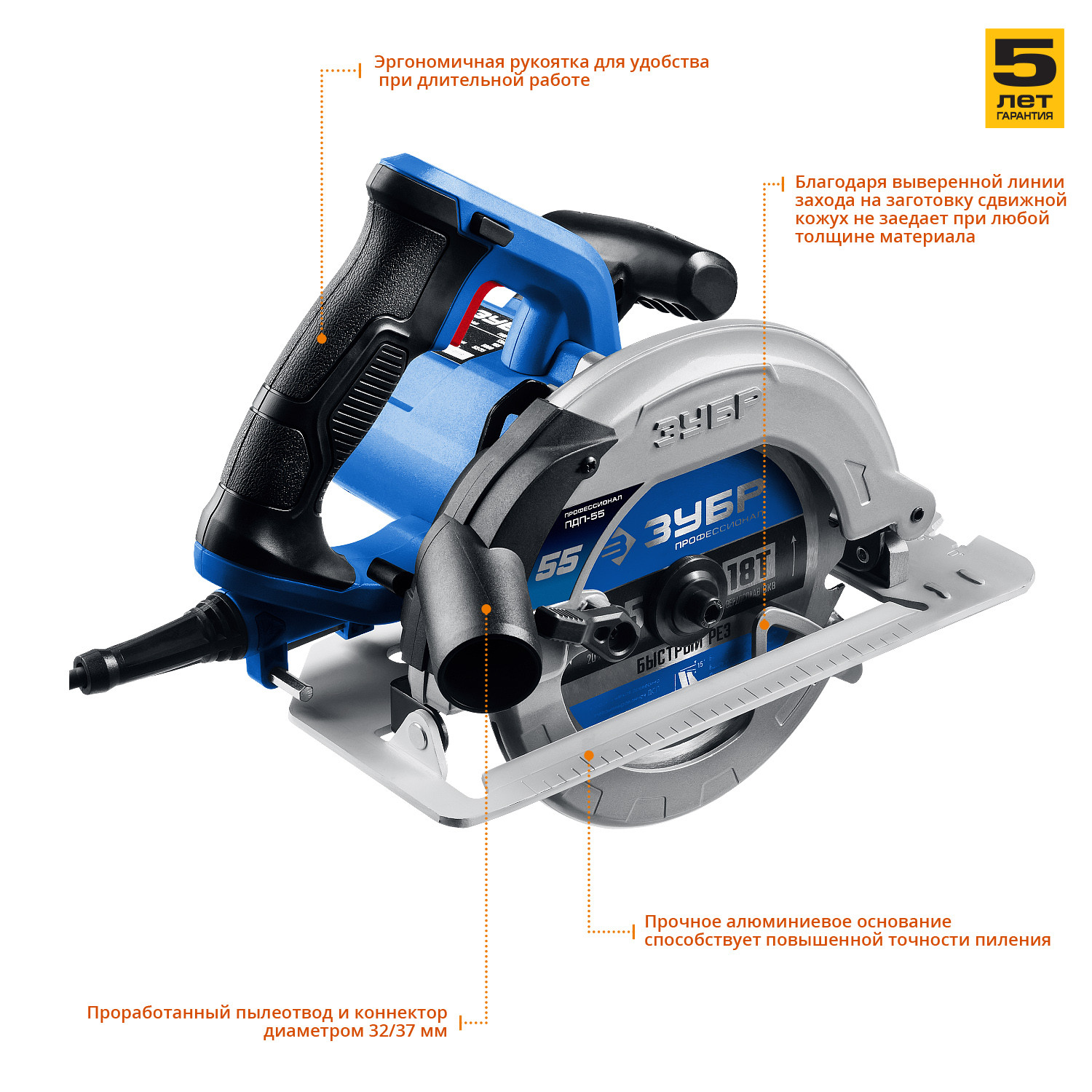 Преимущества циркулярной пилы зубр Профессионал ПДП-55: