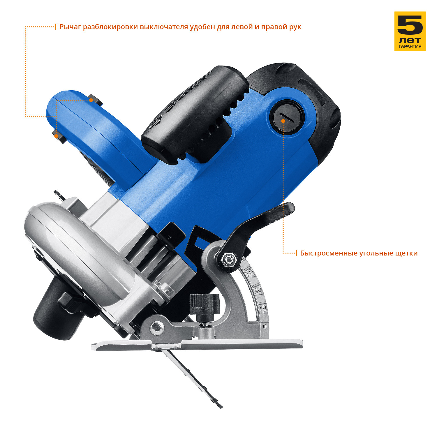 - Бесступенчатая регулировка глубины и угла пиления с удобными шкалами для точных работ.