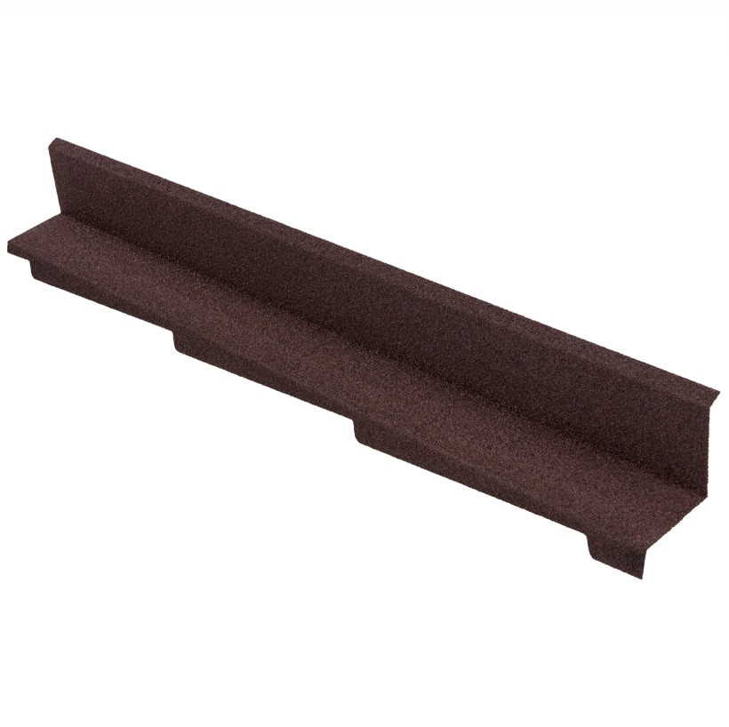 Планка примыкания Технониколь Luxard Мокко боковая правая - это важный функционально-декоративный элемент для кровли, устанавливающийся в месте бокового левого примыкания скатной поверхности кровли к вертикальной поверхности, например, к стене вдоль скатного элемента. Длина 1250 мм, высота: 110 мм.