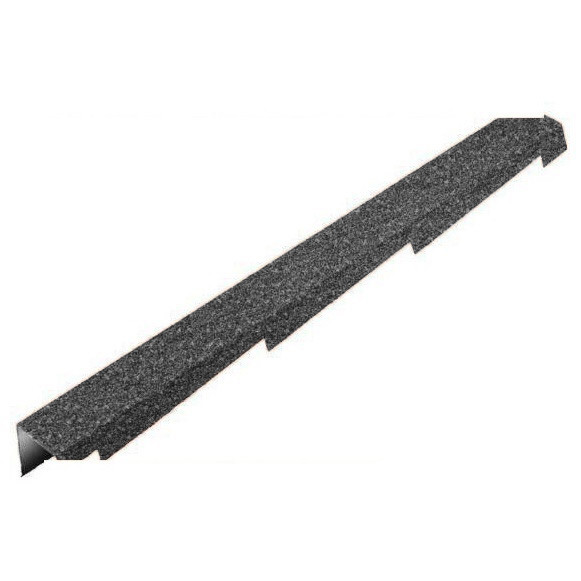 Планка торцевая Metrotile Сланцевая левая предназначена для монтажа на линиях фронтонов. Это один из основных элементов кровли, применяемый для завершения контура кровли. Планка не только придает кровле законченный вид, но и защищает ее от ветровых нагрузок, попадания осадков.
