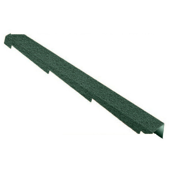 Планка торцевая Metrotile темно-зеленая правая предназначена для монтажа на линиях фронтонов. Это один из основных элементов кровли, применяемый для завершения контура кровли. Планка не только придает кровле законченный вид, но и защищает ее от ветровых нагрузок, попадания осадков.