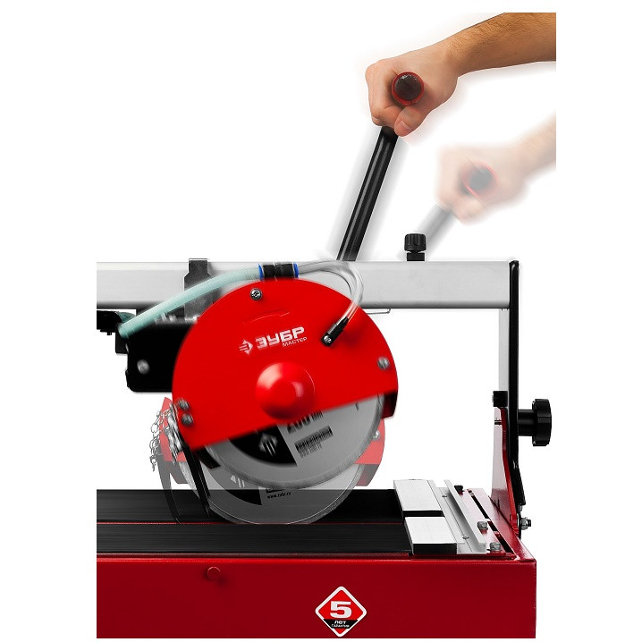 Электроплиткорез Зубр Мастер ЭП-300-1500C оснащен асинхронным двигателем с улучшенными подшипниками. Он не требует обслуживания и прост в эксплуатации. Каретка перемещается за счет вертикально расположенных подшипников, что исключает появление люфтов и позволяет производить точный рез. Для безопасной работы предусмотрены защитное заземление и электромагнитный выключатель, предотвращающий случайное включение аппарата при восстановлении напряжения после пропадания