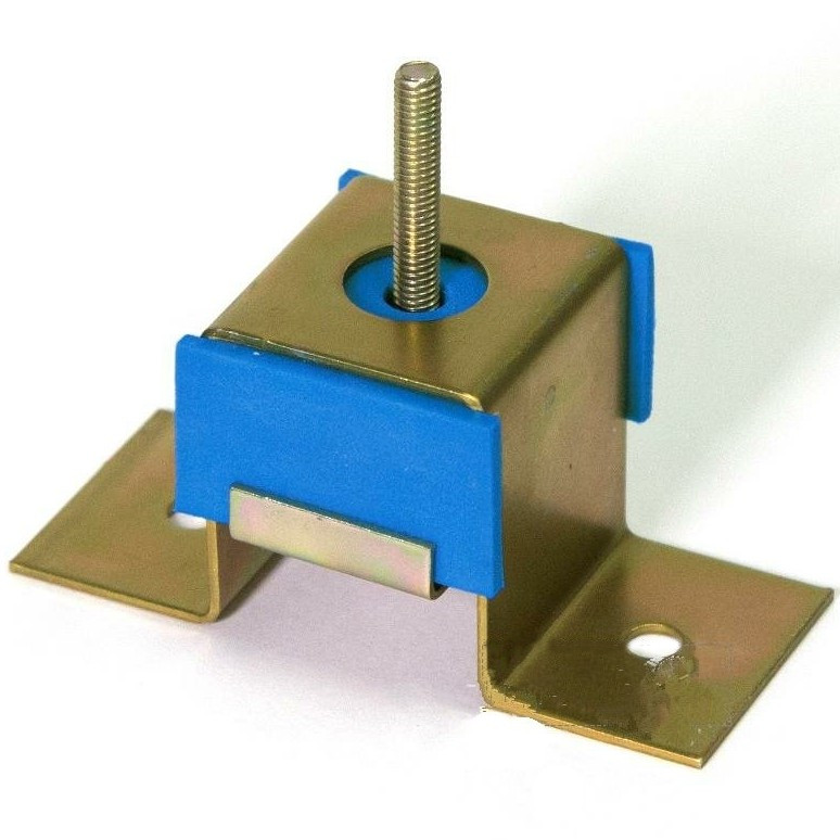 Конструкция потолочного подвеса представляет собой винтовое крепление М6, соединённое с металлической пластиной с отверстиями для фиксации на несущей поверхности. Демпфирующий элемент изготовлен из микропористого полиуретана. Эффективный диапазон рабочей нагрузки - от 3 до 70 кг.