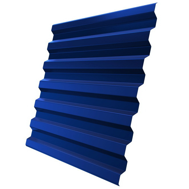 Профнастил С21 Grand Line Optima Pe 0,4 мм RAL 5005 сигнальный синий – материал для устройства кровель, облицовки стен и возведения ограждений промышленных и частных объектов. Имеет симметричные трапециевидные волны профиля и соответствует ГОСТ 24045-2010. Один из самых часто используемых видов профнастила для кровли.