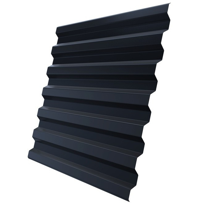 Профнастил С21 Железный Форт Pe 0,35 мм RAL 7024– материал для устройства кровель, облицовки стен и возведения ограждений промышленных и частных объектов. Имеет симметричные трапециевидные волны профиля. Один из самых часто используемых видов профнастила для кровли. Монтаж такого профнастила будет технологичным и быстрым.
