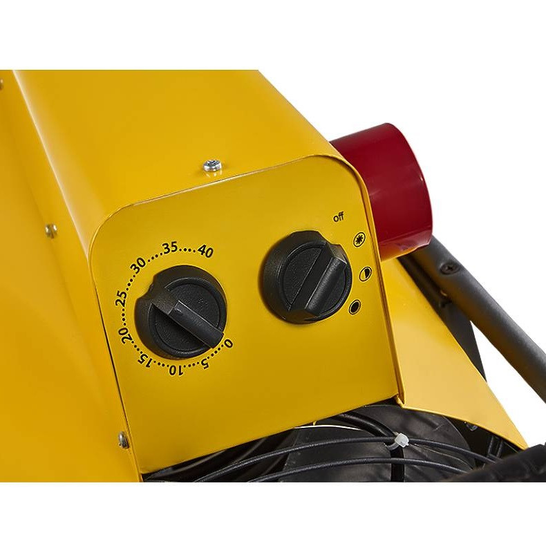 - Обогреватель питается от сети 400В и имеет трёхфазную вилку на корпусе, что обеспечивает простоту и удобство подключения.