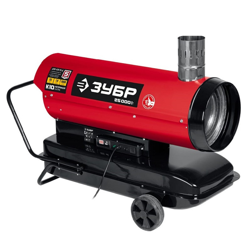 Пушка тепловая дизельная Зубр ДПН-К10-25-Д 25 кВт работает на дизельном топливе для всех климатических условий. Благодаря конструкции, которая отводит продукты сгорания за пределы отапливаемого помещения, тепловая пушка оптимально подходит для сушки и прогрева как на строительных площадках, так и в жилых помещениях. Надежный поджиг и эффективное горение гарантируют безотказную подачу тепла в любых условиях эксплуатации.