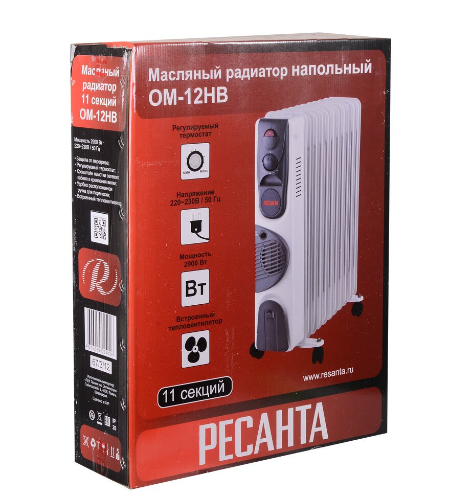 Радиатор масляный Ресанта ОМ-12НВ 67/3/12 с вентилятором