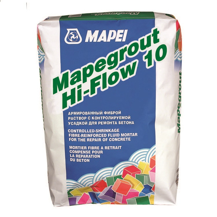 Mapei Mapegrout Hi-Flow 10 - безусадочная быстротвердеющая ремонтная смесь наливного типа, содержащая полимерную фибру. Смесь предназначена для ремонта бетонных и железобетонных конструкций. Максимальный размер заполнителя 10 мм. Толщина заливки от 40 до 100 мм. При смешивании с водой образует не расслаивающуюся бетонную смесь с высокой текучестью, что позволяет применять её методом заливки в опалубку.