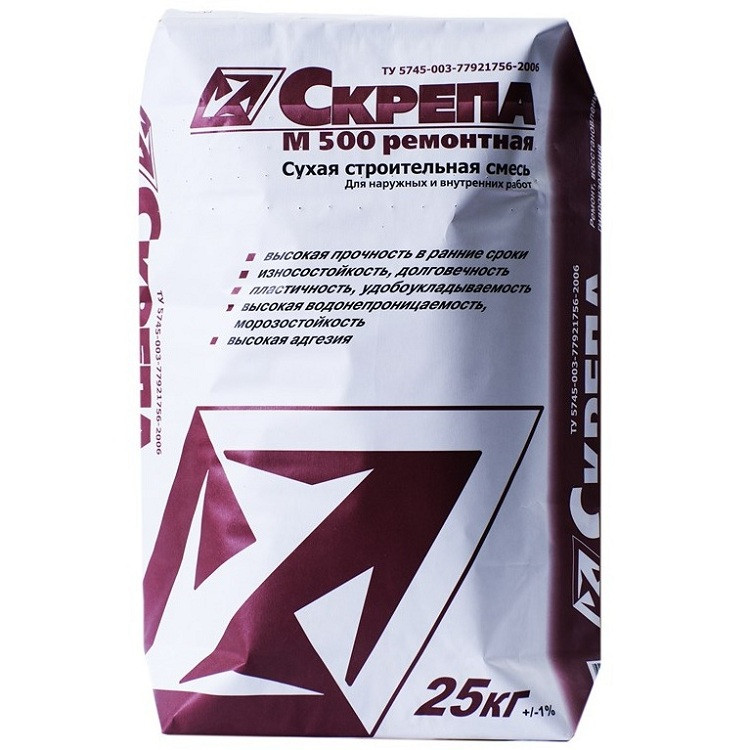 Ремонтный состав Пенетрон Скрепа М500 представляет собой сухую ремонтную поверхностно-восстановительную смесь, состоящую из портландцемента, кварцевого песка определенной гранулометрии, запатентованных химических добавок и армирующего фиброволокна. Скрепа М500 предназначена для ремонта и гидроизоляции железобетонных, кирпичных и каменных конструкций различного назначения, в том числе методом мокрого торкретирования.