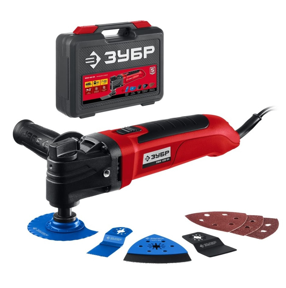 Реноватор Зубр МФИ-400 КН OIS 400 Вт универсальное устройство для разных строительных работ (резка, шлифование), особенно в труднодоступных местах. Большой угол колебаний 3 градуса в сочетании с широким спектром регулировки частоты обеспечивают эффективную работу с любым материалом. Расширенная комплектация включает в себя базовый набор насадок для начала работы сразу после покупки и удобный кейс для хранения и переноски. Применяется для резки, пилки, шлифовки заготовок из дерева, металла, керамики, пластика.