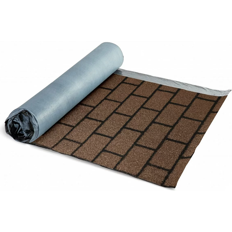 Рулонная черепица Технониколь Кирпичная кладка — это декоративный рулонный кровельный самоклеящийся битумно-полимерный материал. Ее получают путем пропитки основы из кроссармированного комбинированного холста битумным вяжущим с добавлением СБС полимеров, с последующим нанесением на нижнюю сторону полотна самоклеящегося битумного слоя. Верхнее покрытие материала – цветной базальт и минеральная цветная посыпка в форме рисунка, нижнее покрытие – силиконизированная съемная пленка. С верхней стороны материал имеет продольную битумную полосу, защищенную силиконизированной съемной пленкой.