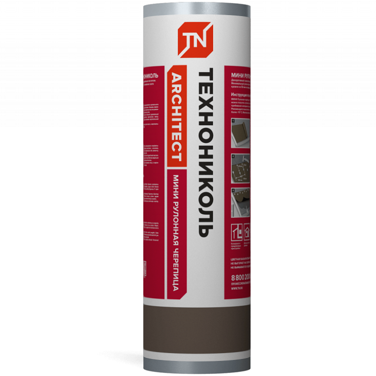 Рулонная черепица Технониколь Мини — это декоративный рулонный кровельный самоклеящийся битумно-полимерный материал. Ее получают путем пропитки прочной основы из армированного стеклохолста битумно-полимерным вяжущим, с последующим нанесением на нижнюю сторону полотна самоклеящегося слоя. В качестве защитных покрытий применяют с лицевой стороны цветную базальтовую крупнозернистую посыпку, с нижней стороны полотна антиадгезионную полимерную пленку.