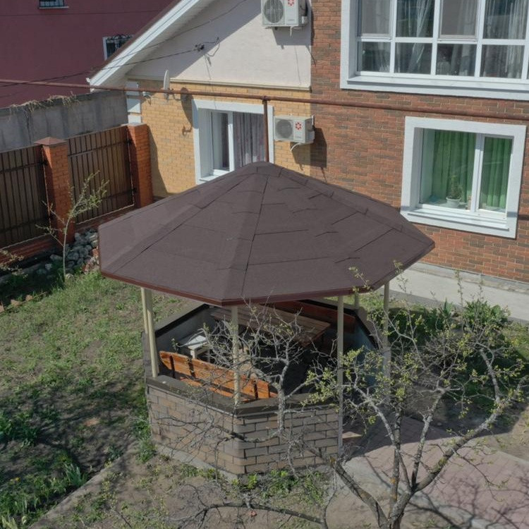 Материал предназначен для устройства однослойного декоративного кровельного покрытия на скатных крышах со сплошным деревянным настилом – беседка, веранда, бытовка, крыльцо, колодец и другие постройки нового строительства или ремонта. Применяется при угле наклона ската от 3° до 60°.