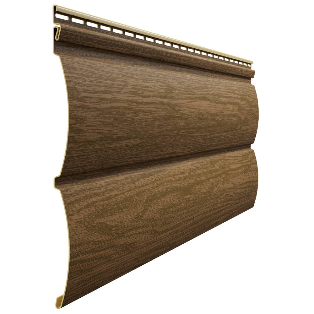 Сайдинг Docke Lux Монреаль Блок-хаус D4.7T PSLL-1088 Миндаль 3600 мм - продвинутая модель в линейке фасадных материалов Docke. Благодаря наличию антиураганного замка он не шумит и не деформируется при любых ветровых нагрузках, максимальная толщина профиля обеспечивает прочность и жесткость фасада, а тщательное соблюдение технологии производства позволяет гарантировать отсутствие деформаций из-за температурных перепадов в любом климатическом поясе в течение 50 лет. Рисунок наносится на горячую панель методом офсетной печати, который обеспечивает типографское качество и максимальную стойкость красителя у УФ-лучам. Отделка фасада сохранит первоначальную насыщенность цвета не менее 10 лет, а после этого будет незначительно и равномерно выгорать незаметно глазу. Отделка сайдингом под дерево выпуклой полукруглой формы дает полную иллюзию того, что дом собран из оцилиндрованного бревна миндального цвета. Тщательная прорисовка каждого волокна на лицевой поверхности делает сходство еще более явным, так что заметить разницу будет очень сложно даже с близкого расстояния.