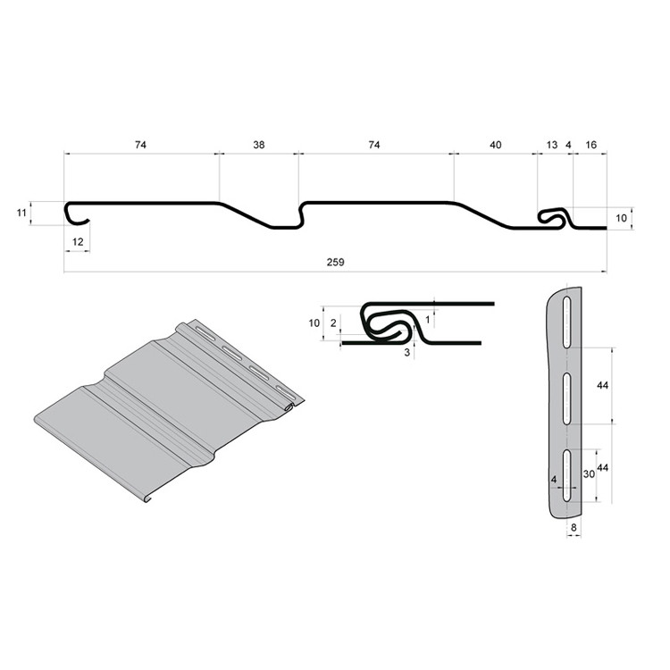 На одном конце листа присутствует перфорация, которая позволяет упростить монтаж винилового сайдинга. Благодаря конструкционным особенностям замка панелей Grand Line Amerika время их монтажа снижается в 2 раза.