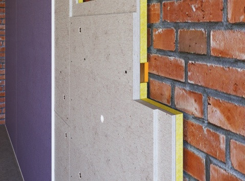 Для опоры на стену или перекрытие в панели используются шесть опорных элементов из материала Sylomer, с помощью которых можно регулировать относ панели от поверхности до 20 мм, а с применением дополнительных самоклеющихся ST-опор – до 50 мм. В исходном состоянии данные опоры выступают более чем на 5 мм над плоскостью сэндвич-панели, но при монтаже на ровную поверхность они поджимаются, и минимальная толщина системы вместе с финишным слоем гипсокартона составляет 55 мм.