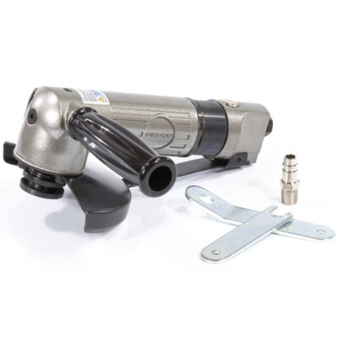 Шлифовальная машина угловая Gross G506 пневматическая прекрасно режет и шлифует металл, камень (без применения воды). Рукоятка снабжена резиновым покрытием, что делает рабочий процесс гораздо комфортнее. Большую широкую клавишу "Пуск" удобно нажимать при любом хвате корпуса. Она имеет предохранитель от случайного запуска.