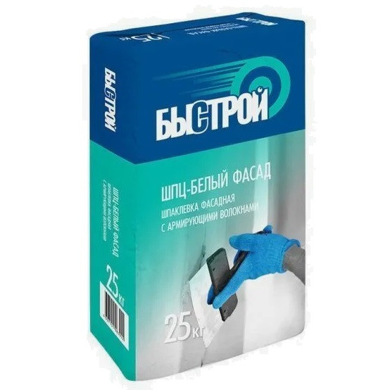 Шпаклевка фасадная Быстрой ШПЦ-серый фасад с армирующими волокнами 25 кг - для выравнивания каменных, кирпичных, цементных и других поверхностей, а также для защиты от атмосферных воздействий или придания декоративных свойств поверхностям при строительстве, ремонте и реконструкции зданий и сооружений при проведении наружных и внутренних работ.