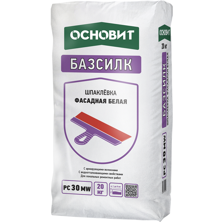 Шпатлевка Основит Базсилк PC30 MW армированная цементная фасадная предназначена для выравнивания и ремонта фасадов, цоколей, стен и потолков в сухих и влажных помещениях. Рекомендуется для ремонта кладочных швов, оконных откосов, локальных ремонтных работ, заделки швов и стыков бетонных плит. Армирующая шпатлевка Базсилк PC30 MW применяется для внутренних и наружных работ. Рекомендуется под последующее нанесение декоративных покрытий, также ввозможна эксплуатация поверхности без последующего окрашивания. Наносится на бетонные и кирпичные основания, цементные штукатурки, ГКЛ, ГВЛ, ПГП и любые другие минеральные поверхности.