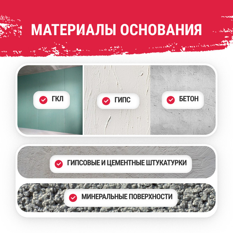 Основание должно быть чистым, твердым и прочным. Окна и другие поверхности, не подвергающиеся обработке, должны быть тщательно защищены. Вещества, ослабляющие адгезию, такие как жир, пыль и т.п. должны быть удалены. Температура основания и растворной смеси должна быть не менее +10°С.