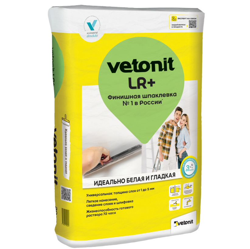 Преимущества шпатлевки Weber.Vetonit LR+: