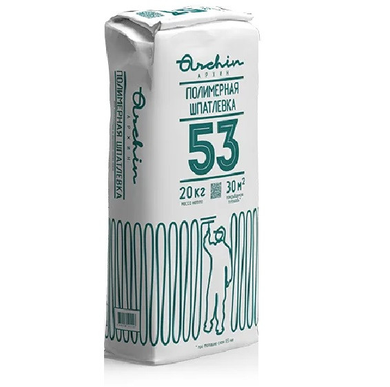 Шпатлевка полимерная Archin 53 20 кг сухая полимерная шпатлевка, предназначенная для финишного шпатлевания стен и потолков под последующую окраску, оклейку обоями, перед нанесением венецианской штукатурки и других финишных материалов внутри сухих отапливаемых помещений.