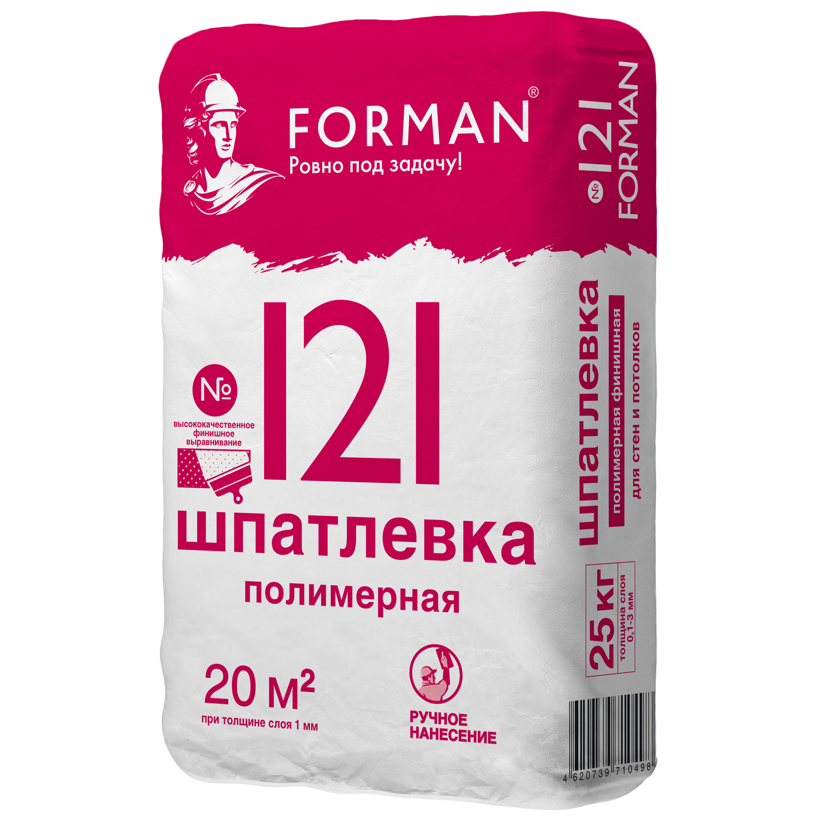 Forman 121 идеальна для задачи финишной отделки потолков в помещениях с нормальной влажностью при необходимости белого цвета и длительной жизнеспособности раствора.