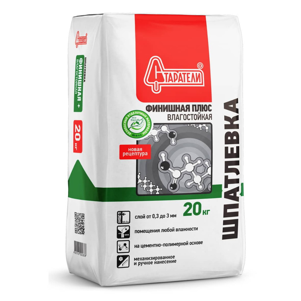 Шпатлевка полимерная Старатели Финишная Плюс влагостойкая 20 кг применяется для тонкослойного выравнивания стен и потолков внутри помещений с нормальным и повышенным уровнем влажности с целью получения высококачественной финишной поверхности под последующую окраску, оклейку тонкими обоями и другие виды декоративных покрытий.