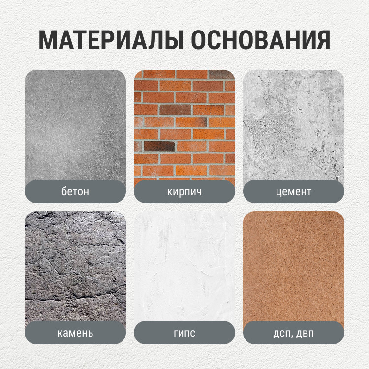 - Отличная адгезия к поверхностям из бетона, камня, гипса, цемента, кирпича, ДСП, ДВП.