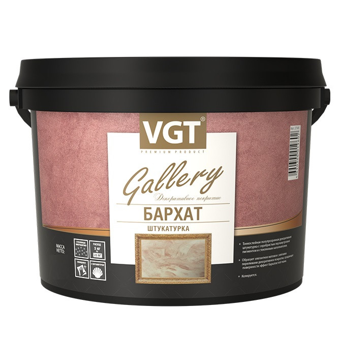 Штукатурка декоративная VGT Бархат серебристо-белая база 3,9 л/5 кг тонкослойная полупрозрачная декоративная штукатурка с серебристым перламутровым пигментом и стеклянным наполнителем (диаметром 40-80 мкм) образует элегантное матовое с мягкими переливами декоративное покрытие, придающее поверхности эффект бархатистой ткани. Покрытие хорошо смотрится как в классическом, так и в современном интерьере. Материал образует прочную, водостойкую поверхность. Применяется по бетонным, кирпичным, оштукатуренным, гипсокартонным и другим видам минеральных поверхностей внутри помещений всех типов зданий и сооружений (А-В).