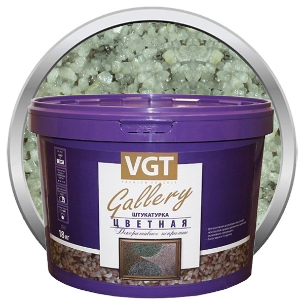 Штукатурка декоративная VGT Gallery №11 крупнозернистая - декоративное покрытие на основе натуральной мраморной крошки и акрилового связующего. Выпускается крупнозернистая (размер зерна от 1.0 до 1.5 мм). рименяется во всех типах зданий и сооружений (А-В).