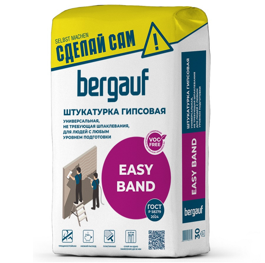 Bergauf Easy Band – штукатурка на гипсовой основе для людей с любым уровнем подготовки, не требующая шпаклевания. Подходит внутренних работ в помещениях с нормальной влажностью.