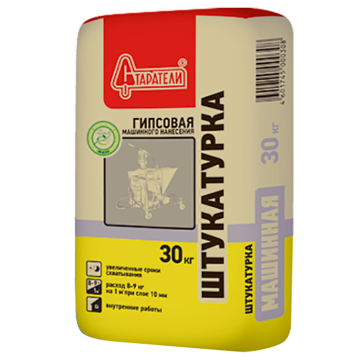 Штукатурка гипсовая Старатели изготовлена на основе гипса с добавлением легкого наполнителя, позволяющего снизить расход сухой смеси, и высококачественных модифицирующих добавок, позволяющих в короткие сроки качественно выполнять отделочные работы.