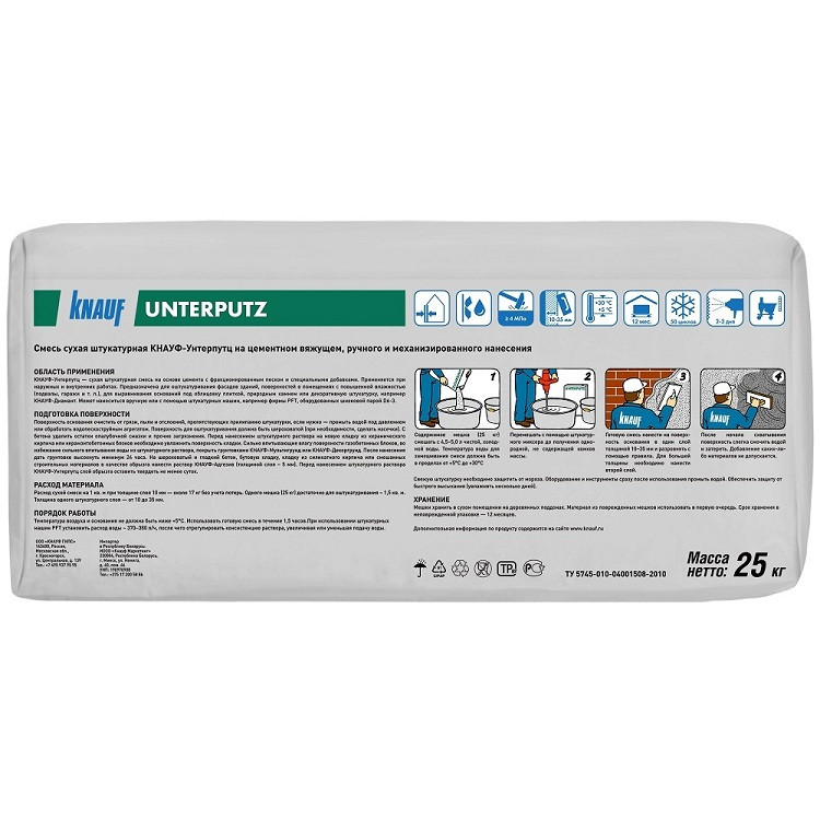 Knauf Унтерпутц - сухая штукатурная смесь на основе цемента, фракционированного песка и специальных добавок.