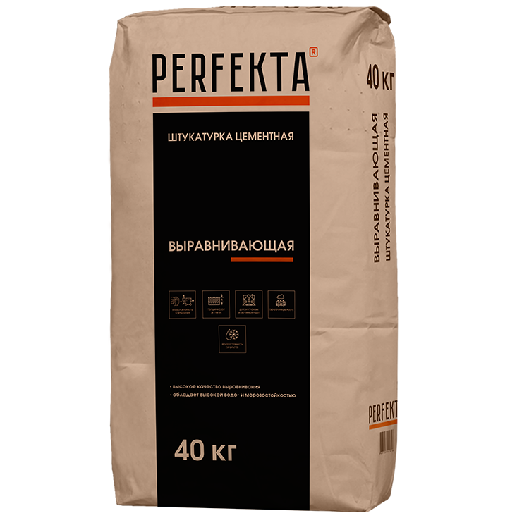 Штукатурка цементная Perfekta выравнивающая предназначена для предварительного выравнивания стен внутри и снаружи зданий и применяется как для однослойного выравнивания, так и в качестве обрызга и грунта в многослойных штукатурных системах.