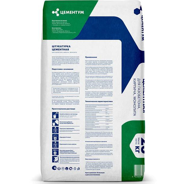 Цементная штукатурка Цементум — это сухая смесь на основе цемента собственного производства и тщательно подобранных минеральных наполнителей, специальных заполнителей и модифицирующих добавок. Выпускается в соответствии с требованиями российского стандарта ГОСТ 33083-2014.