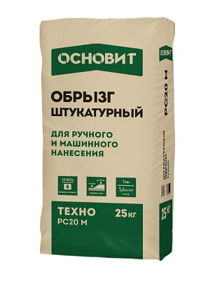 Штукатурный обрызг Основит Техно PC20 M - сухая смесь на основе цемента с добавлением полимерных материалов, которые придают штукатурке пластичность, высокую адгезию, паропроницаемость.