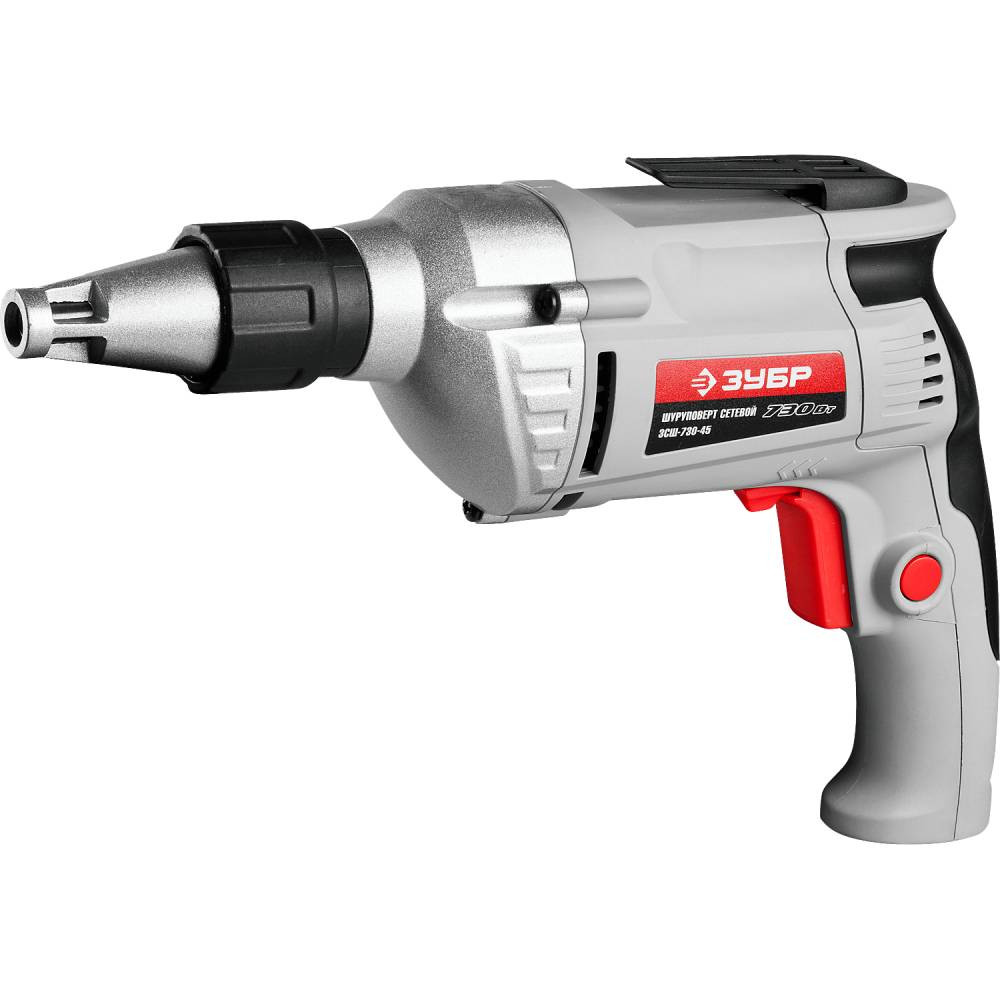 Шуруповерт сетевой Зубр Универсал ЗСШ-730-45 - универсальный инструмент, в том числе, для заворачивания крепежа в гипсокартон. Точная настройка глубины закручивания позволяет выполнять серийную работу без повреждения материала, а высокая частота вращения помогает выполнять работу быстрее Применяется для вкручивания/выкручивания шурупов, саморезов и винтов (при установке соответствующих бит) при работе от сети.