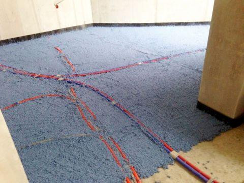 Перед инсталляцией покрытия стандартной толщины 20 мм с поверхности перекрытия должен быть убран строительный мусор с размером фракции более 10 мм. Покрытие Шумопласт наносится на перекрытие ручным или механическим способом. Шумопласт заводится на все прилегающие стены и колонны на высоту чуть большую, чем уровень выравнивающей стяжки для предотвращения образования звуковых мостиков при ее устройстве. Поверхности стен и колонн для увеличения адгезии перед обработкой покрытием предварительно грунтуются составом Шумопласт-Грунт. Выравнивающая стяжка толщиной не менее 50 мм укладывается непосредственно на покрытие Шумопласт, и в обязательном порядке должна быть армирована металлическими конструкциями для придания ей повышенной механической прочности.