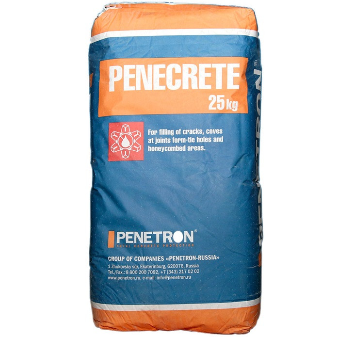 Сухая строительная смесь Пенетрон Пенекрит применяется для гидроизоляции трещин, швов, стыков, сопряжений, примыканий, вводов коммуникаций в статически нагруженных сборных и монолитных бетонных конструкциях. Смесь обладает высокой водонепроницаемость, возможно применение при наличии фильтрации воды.