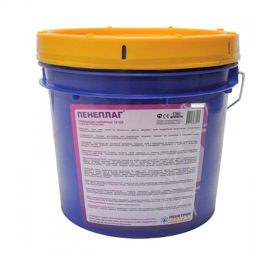 Сухая строительная смесь Пенетрон Пенеплаг состоит из специального цемента, кварцевого песка определенной гранулометрии, запатентованных активных химических добавок. Использование Пенеплага позволяет изолировать напорную течь для дальнейшей обработки бетона материалами Пенекрит и Пенетрон.