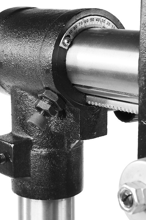 - регулируемый наклон сверлильной головки позволяет выполнять сверление под углом;